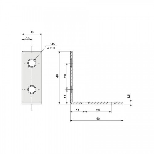 Уголок 40х40х15 (1,5мм) с 4-мя отверстиями, отделка цинк
