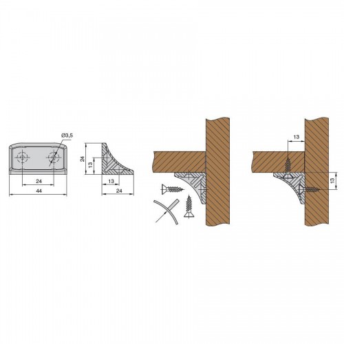 Уголок-крепление каркаса с 4-мя отверстиями и крышечкой, цвет серебристый металлик (за 100 штук)