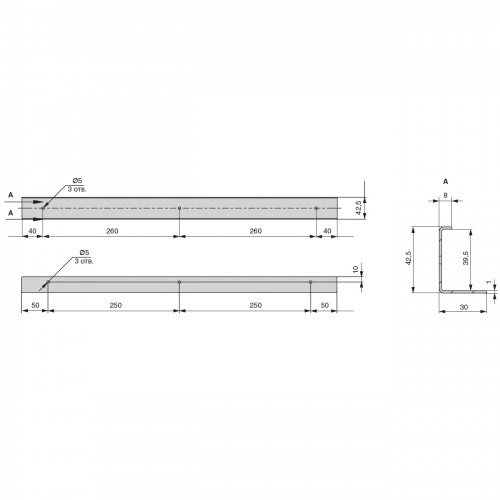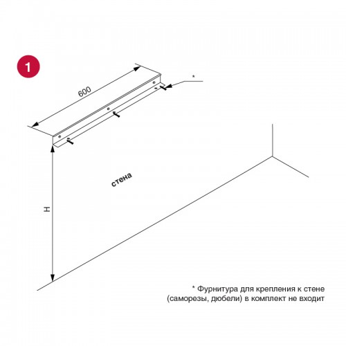 Кронштейн 600 мм для крепления столешницы H.38,8мм к стене, отделка сталь нержавеющая