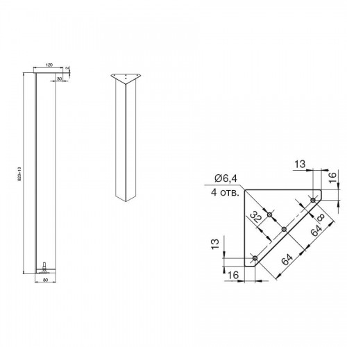 Нога для барной стойки Выборг, h.820, отделка черный бархат (матовый)