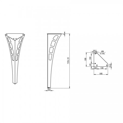 Нога для стола Арнольд, h.720, отделка черный бархат (матовый)