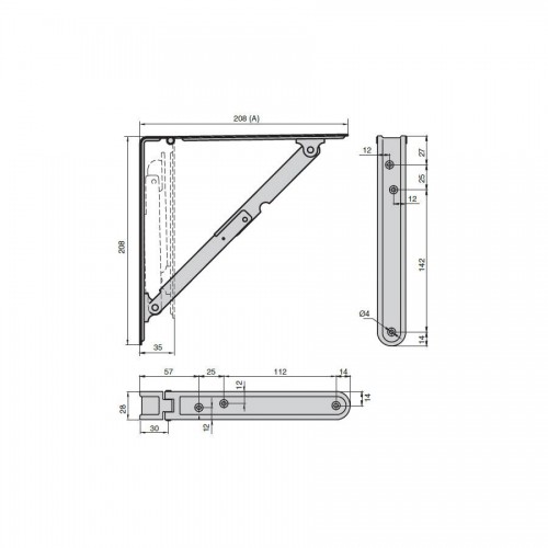 Менсолодержатель складной, L=200мм, отделка коричневый
