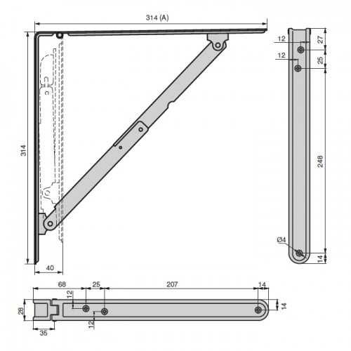 Менсолодержатель складной, L=300мм, отделка белая, комплект 2 штуки