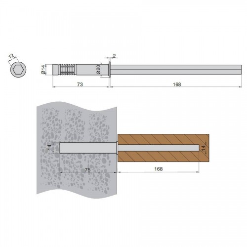 Менсолодержатель скрытый, L=170мм, d=12мм