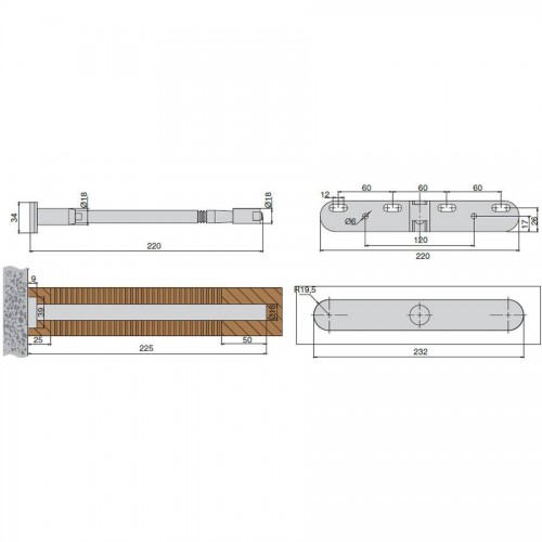 Менсолодержатель скрытый, L=220мм, d=18мм, с регулировкой