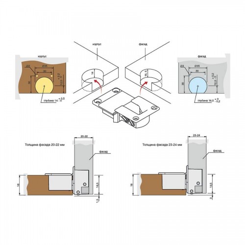 Петля врезная Line-A для откидных фасадов, отделка никель