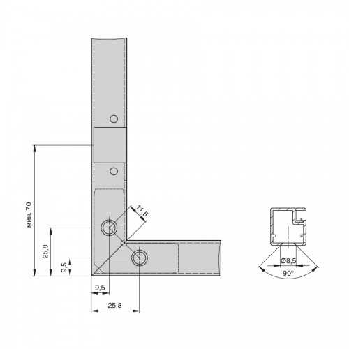 Профиль рамочный FP.03 узкий, L=3000мм, отделка черный шлифованный (анодировка)