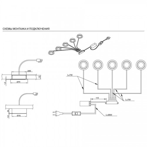 Светильник Астра 5, отделка хром глянец (комплект из 5-ти штук)