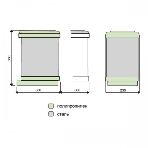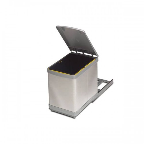 Ведро для мусора (16л) выдвижное, пластик серый металлик + сталь нержавеющая