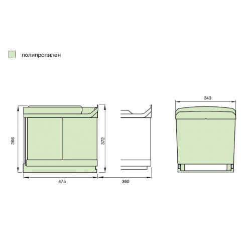 Ведро для мусора (2х16л) выдвижное, пластик серый